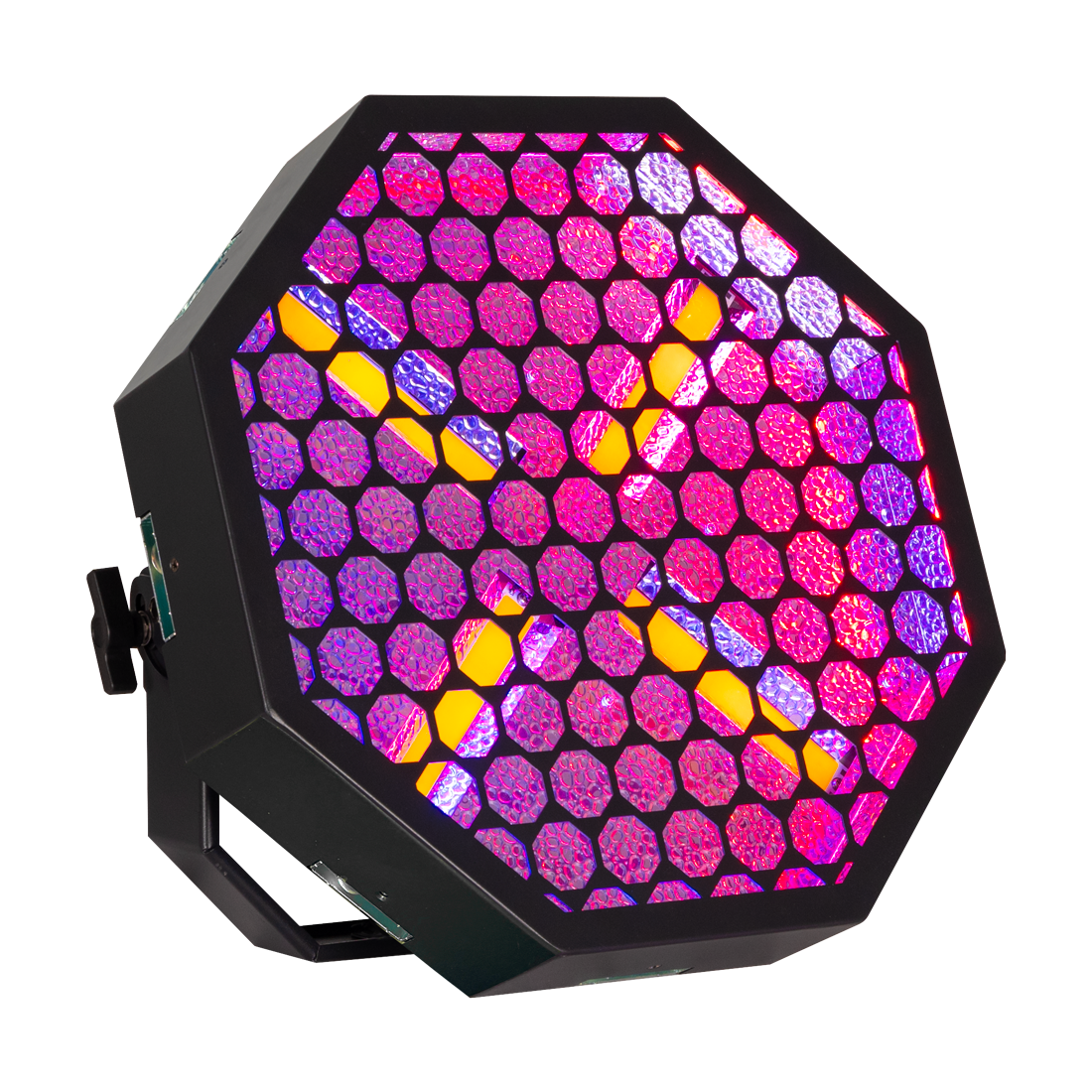 Vintage X is a highly adaptable scenic lighting fixture that sparks creativity and captures attention with its dual-purpose design. Featuring four 60-watt foreground amber LEDs (2000K), it emulates the warm glow of tungsten for a retro blinder effect, while 64 vibrant 3-watt RGB LEDs deliver rich, dynamic color tones and stunning effects. This combination allows for smooth dimming transitions and bold, captivating lighting displays in an intriguing octagon shaped fixture.