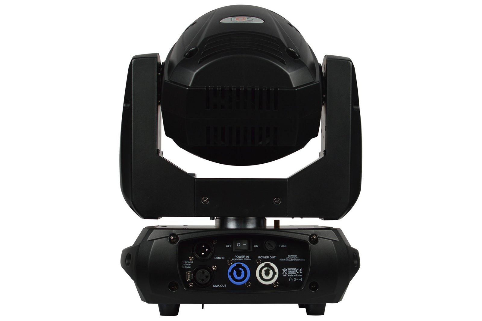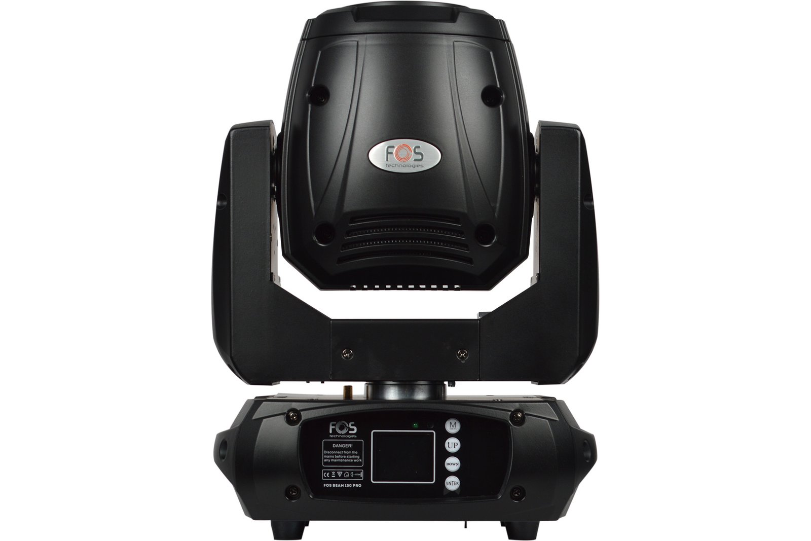 Beam moving head fixture, with static gobos, dichroic colours, rotating prism, and motorised focus.