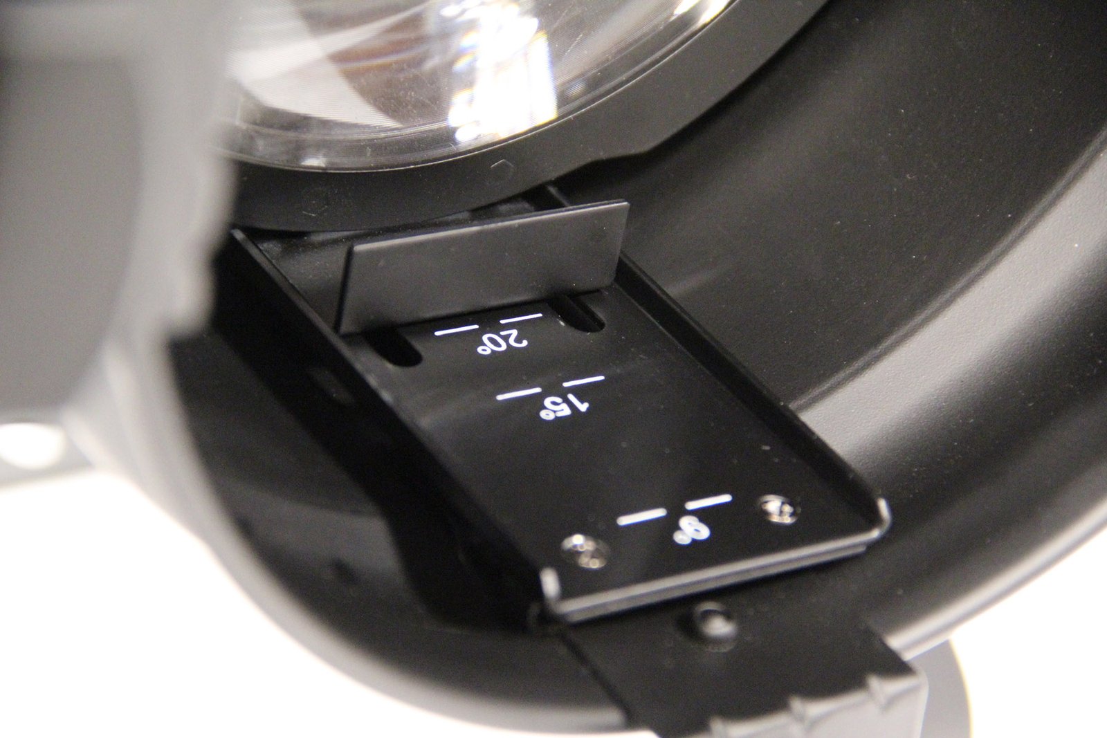 Multistep manual zoom with 5 different angles: 9, 15,20, 25, 30 degrees.