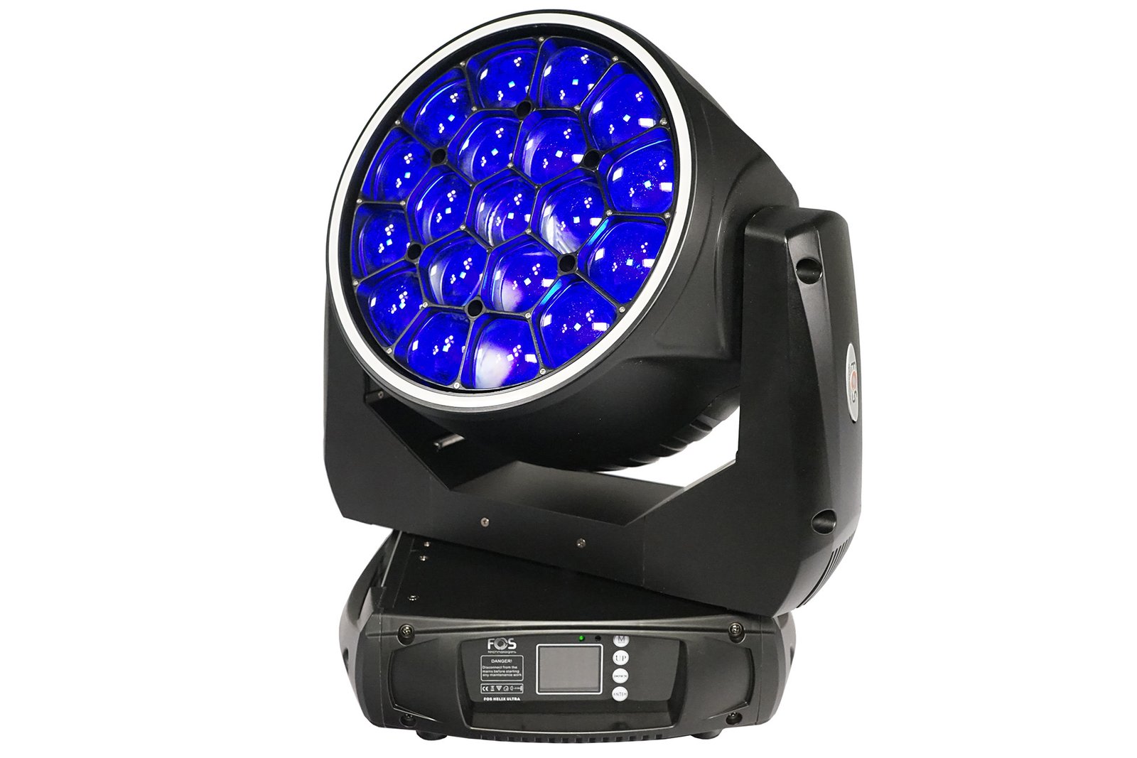 High power wash led fixture with pixel ring,19x20watt RGBW leds controlled pixel by pixel, linear zoom 4?-60? led round ring with dynamic patterns, vortex effect,color temperature adjustment, 28,38,102,114 DMX channels, theater mode, 525x380x560mm 16kg.