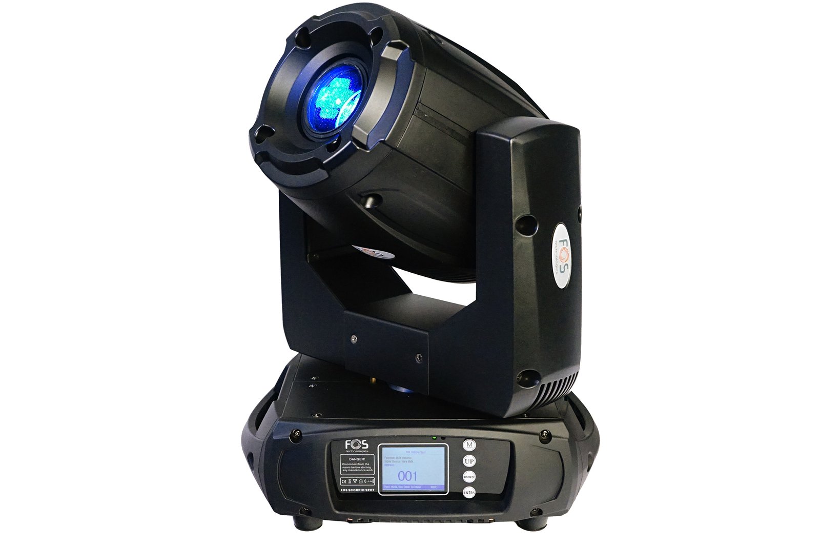 Professional Spot moving head, 200 watt Led source 7500K, standard optics 16?, electronic focus 2.5-30m, 7 colors , 8 static gobos, 6 rotating indexable gobos, 3 facet prism , 55db low noise fans , powercon in/out,.