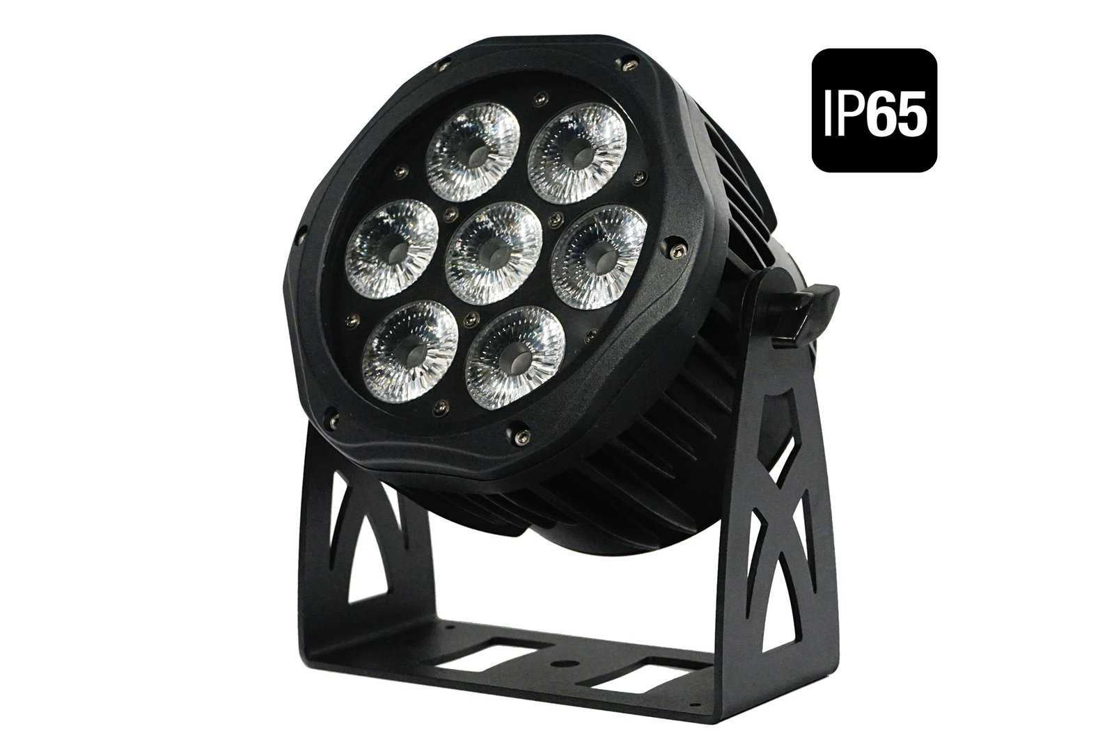 Weatherproof aluminium led par with IP True powercon connectors , Beam aperture: 25?, 7 RGBW+Amber+UV 15w LEDs (6 in1)Dimmer: 0-100% stop/strobe effect, aluminium 3kg, noiseless cooling system.