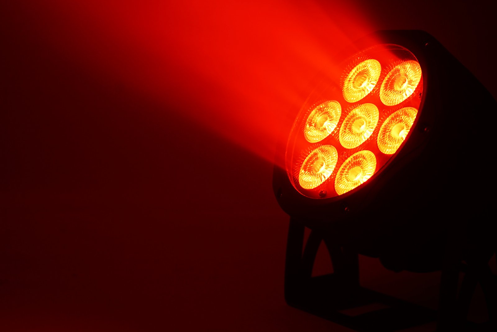 Light source: 7x 15 Watt RGBWAUV 6 in 1 LEDs.