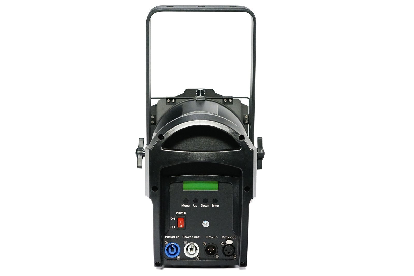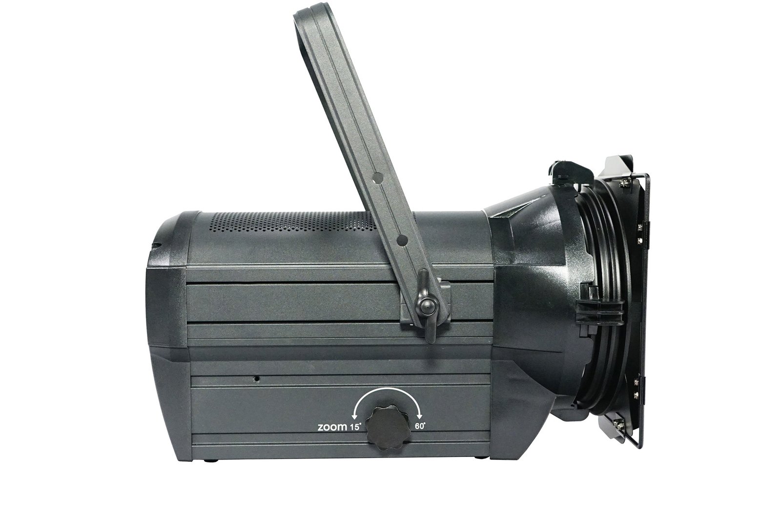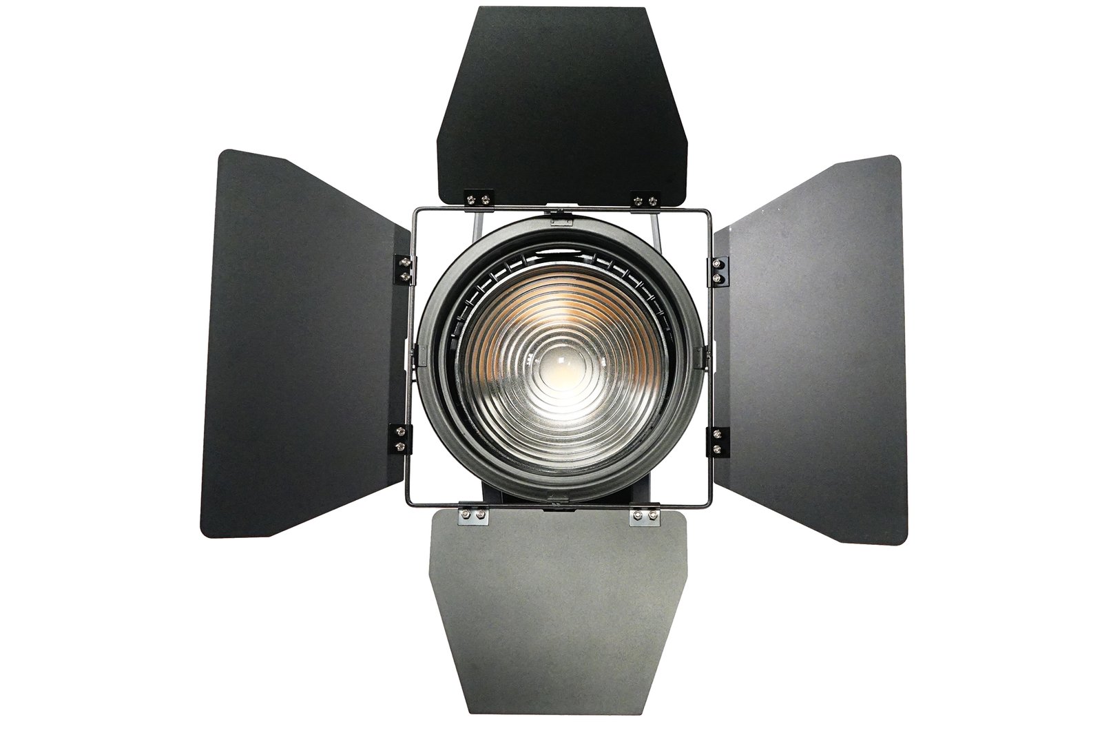 Studio Fresnel, 100 watt Warm White 3200K Cob Led, high CRI (Ra?92) and high brightness LED, Beam angle: 15-60degrees, manual focus adjustable, DMX channel: 1CH, Low Noise Operation,5 kg.